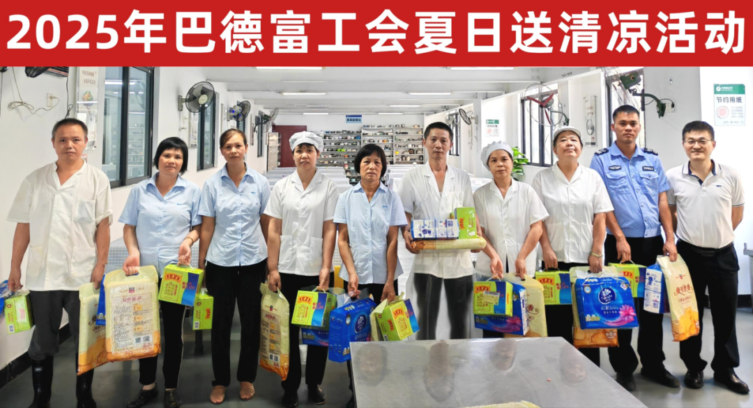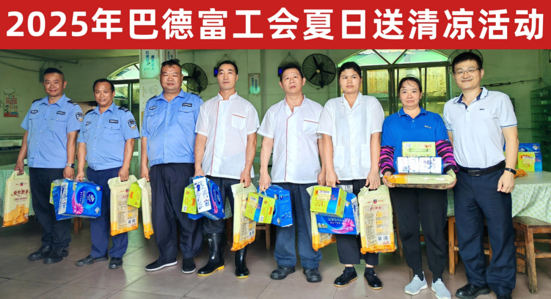 8月22日,巴德富集团工会主席潘建欢带队开展“夏日送清凉”慰问活动,为高温岗位的基层后勤员工送去大米、纸巾、清凉饮料等实用物资,并亲切叮嘱大家注意防暑降温,员工们纷纷表示感受到“家”的温暖。此次活动不仅体现了公司“以奋斗者为本”的核心价值观,也进一步增强了团队凝聚力和向心力。