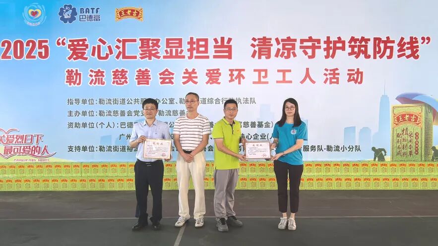 7月30日,巴德富慈善基金积极响应勒流慈善会发起的“关爱环卫工人·夏日送清凉”倡议,捐赠1万元用于购买防暑物资。巴德富集团工会主席潘建欢代表公司出席现场慰问活动,为辛勤工作的环卫工人送去清凉与关怀,传递企业的社会责任与温度。